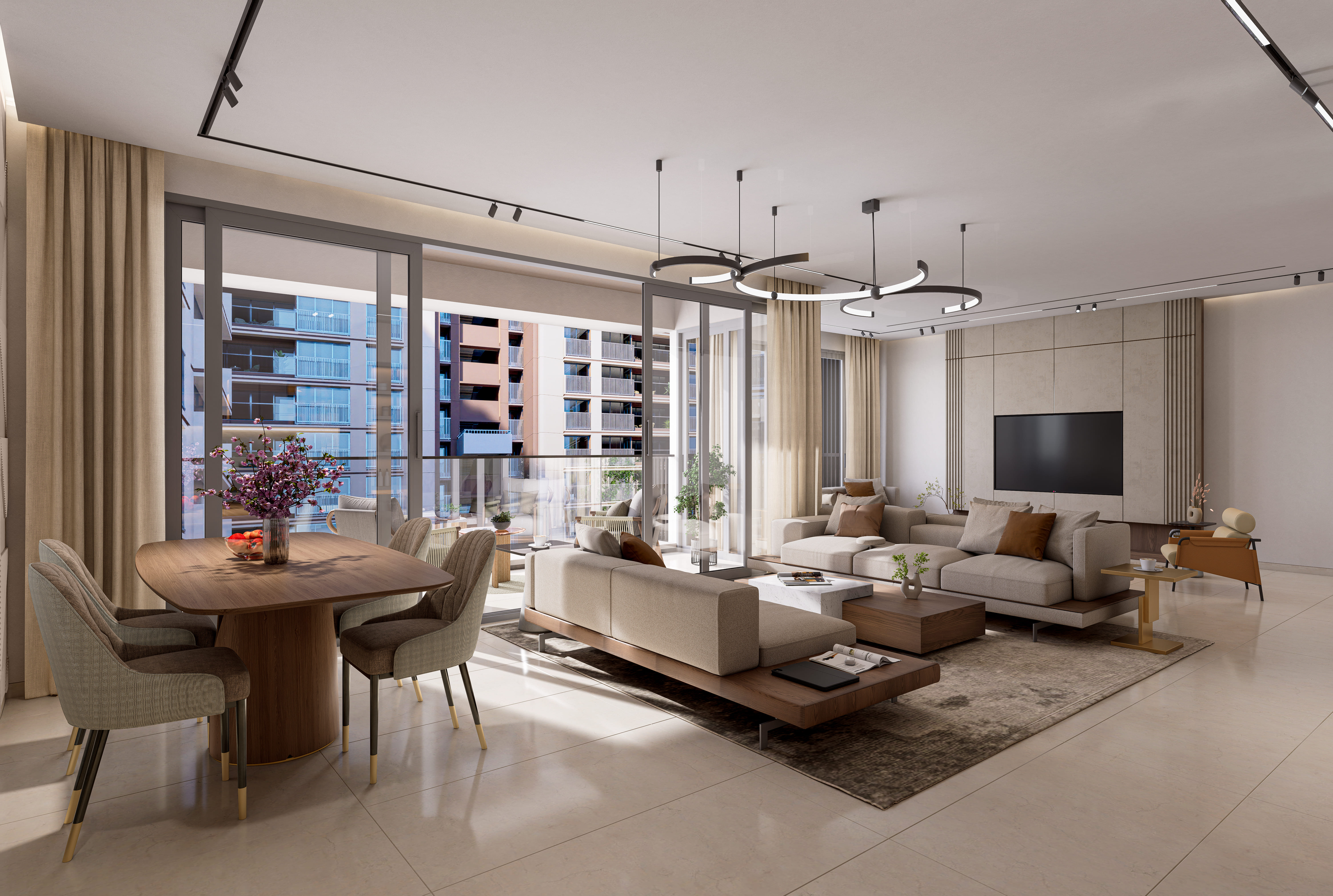A pollution-free, traffic-free landscaped garden forms the heart of the project, offering serene views and vibrant community spaces.