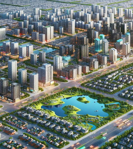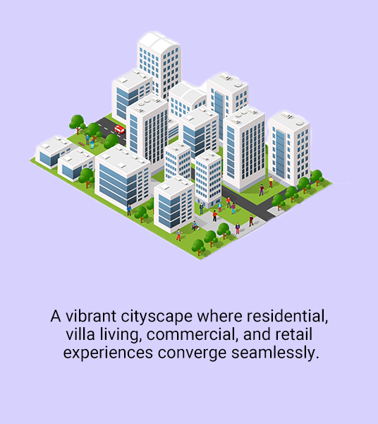 seamlessly integrates residential, commercial, and community spaces along with approximately 7 acres of green zones